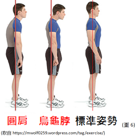 圓肩:肩膀在身體的中軸線的前方上背駝背,呈現弧形