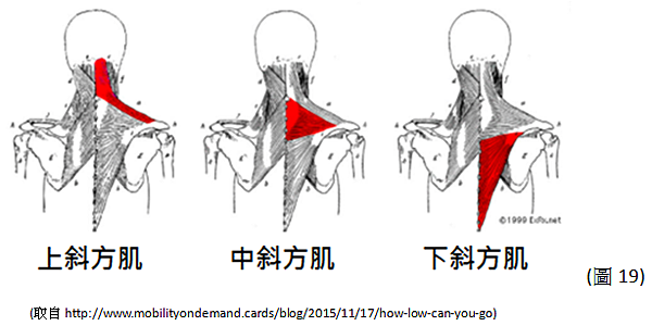 3. 背肌重訓完,會痠在下斜方肌的位置(圖19)。